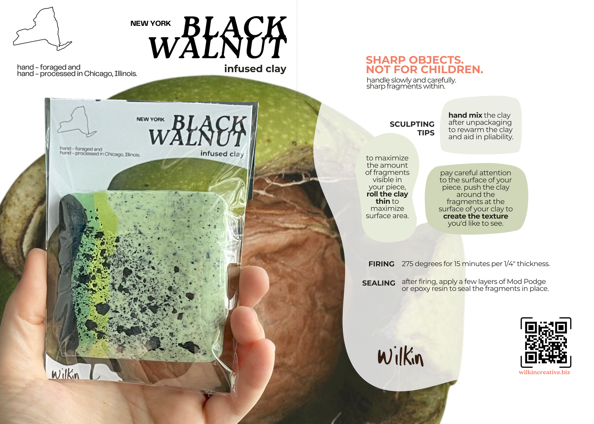 The clay is made with a blend of translucent Sculpey III, iron oxides for pigmentation, and natural pigmented fragments that were hand foraged and processed.