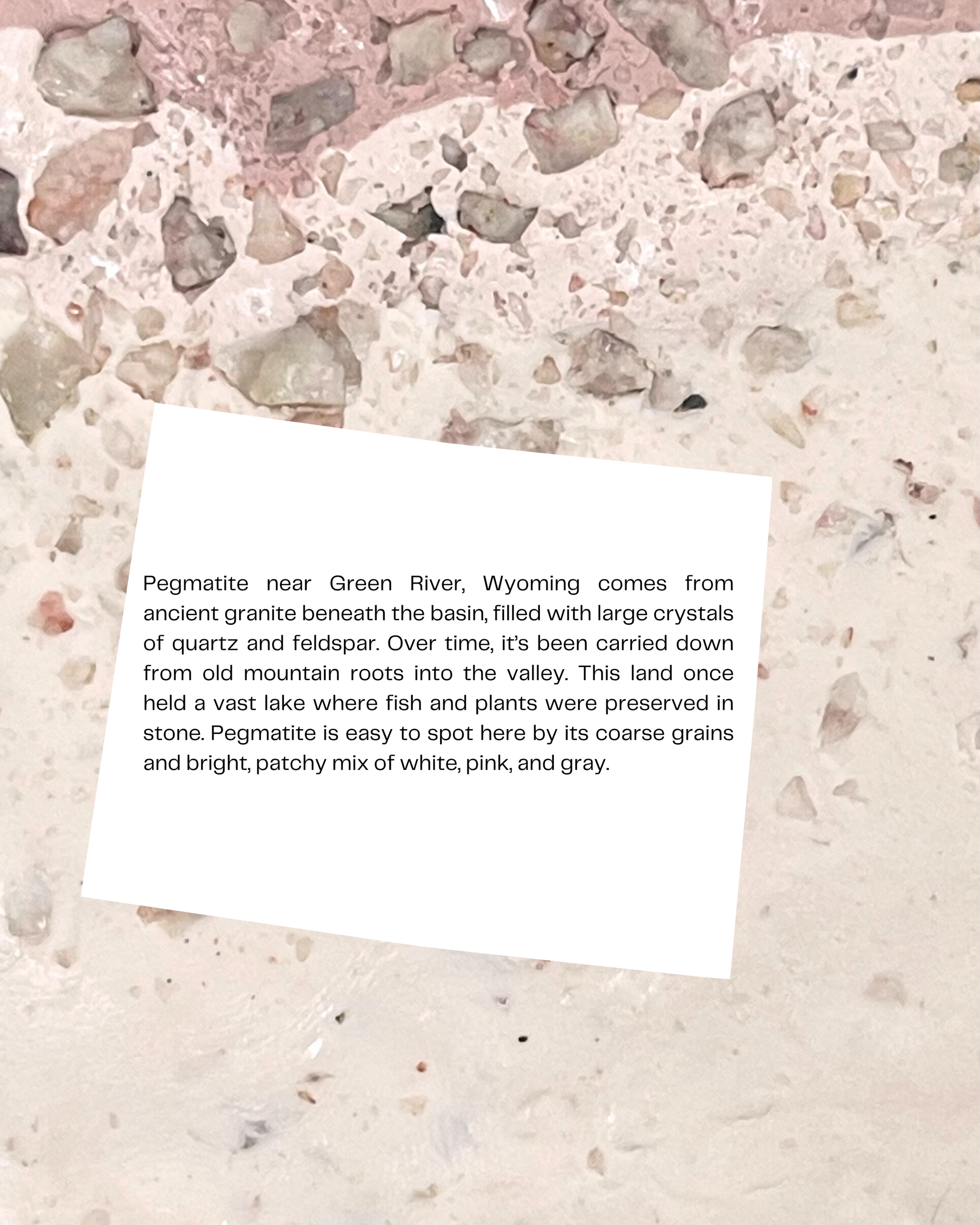 The clay is made with a blend of translucent Sculpey III, iron oxides for pigmentation, and natural pigmented fragments that were hand foraged and processed.