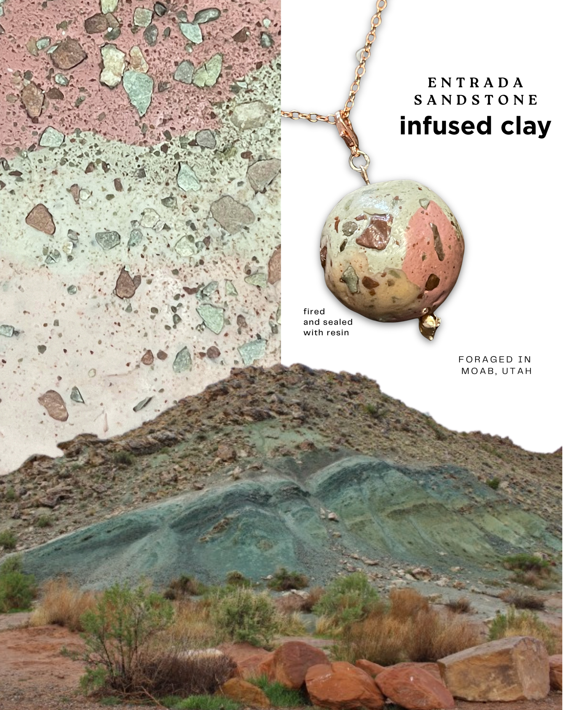 The clay is made with a blend of translucent Sculpey III, iron oxides for pigmentation, and natural pigmented fragments that were hand foraged and processed.