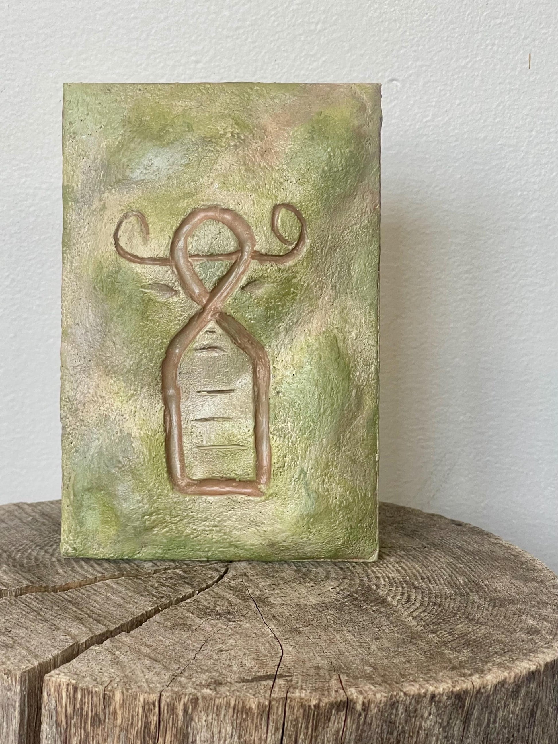 Hand-Sculpted Clay Petroglyph Wall Art: Montserrat Soldier Ghaut, Volcanic Tuff Texture