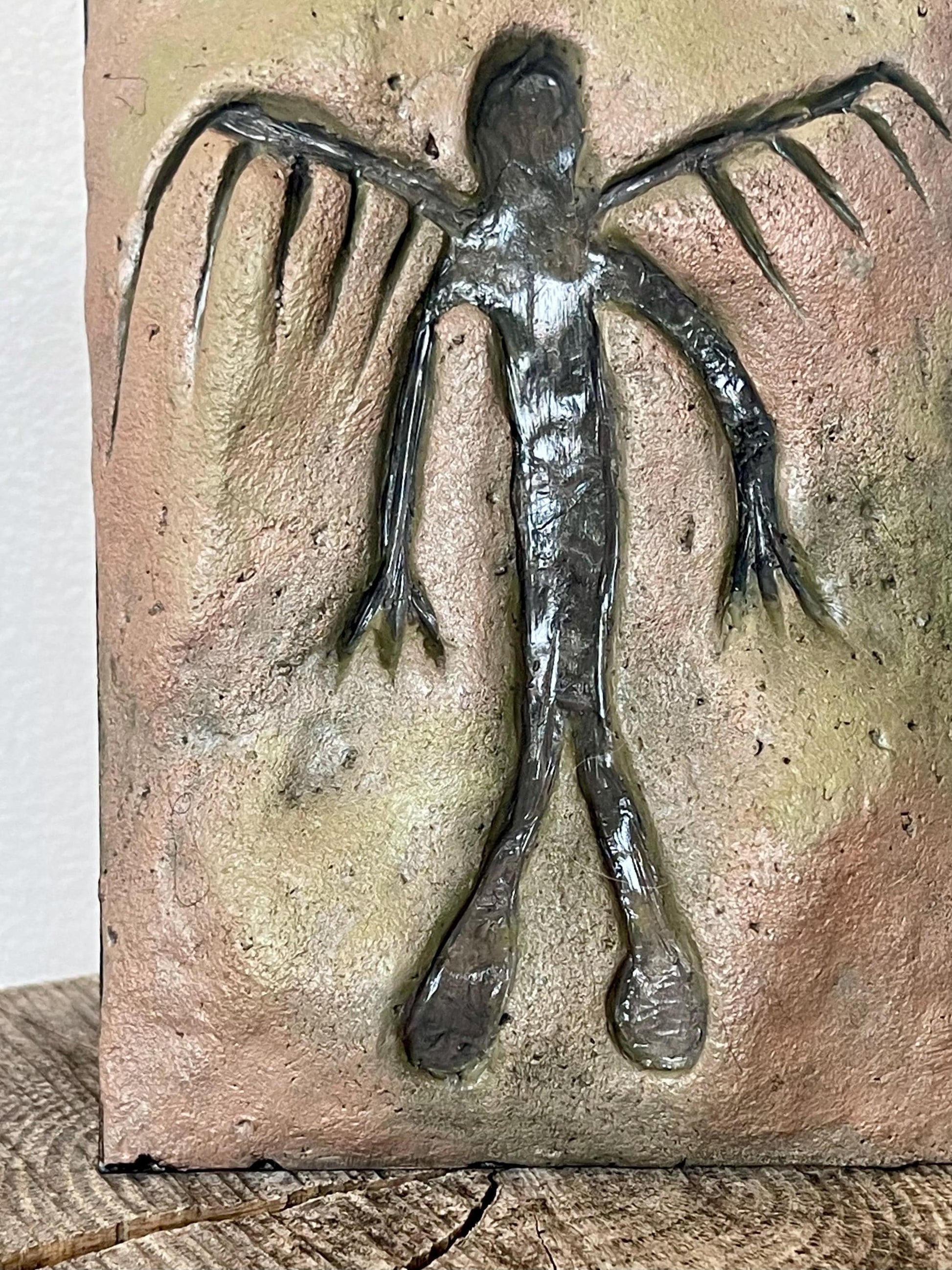 Jōmon Winged Figure Petroglyph Replica: Hand-Sculpted Clay Wall Art