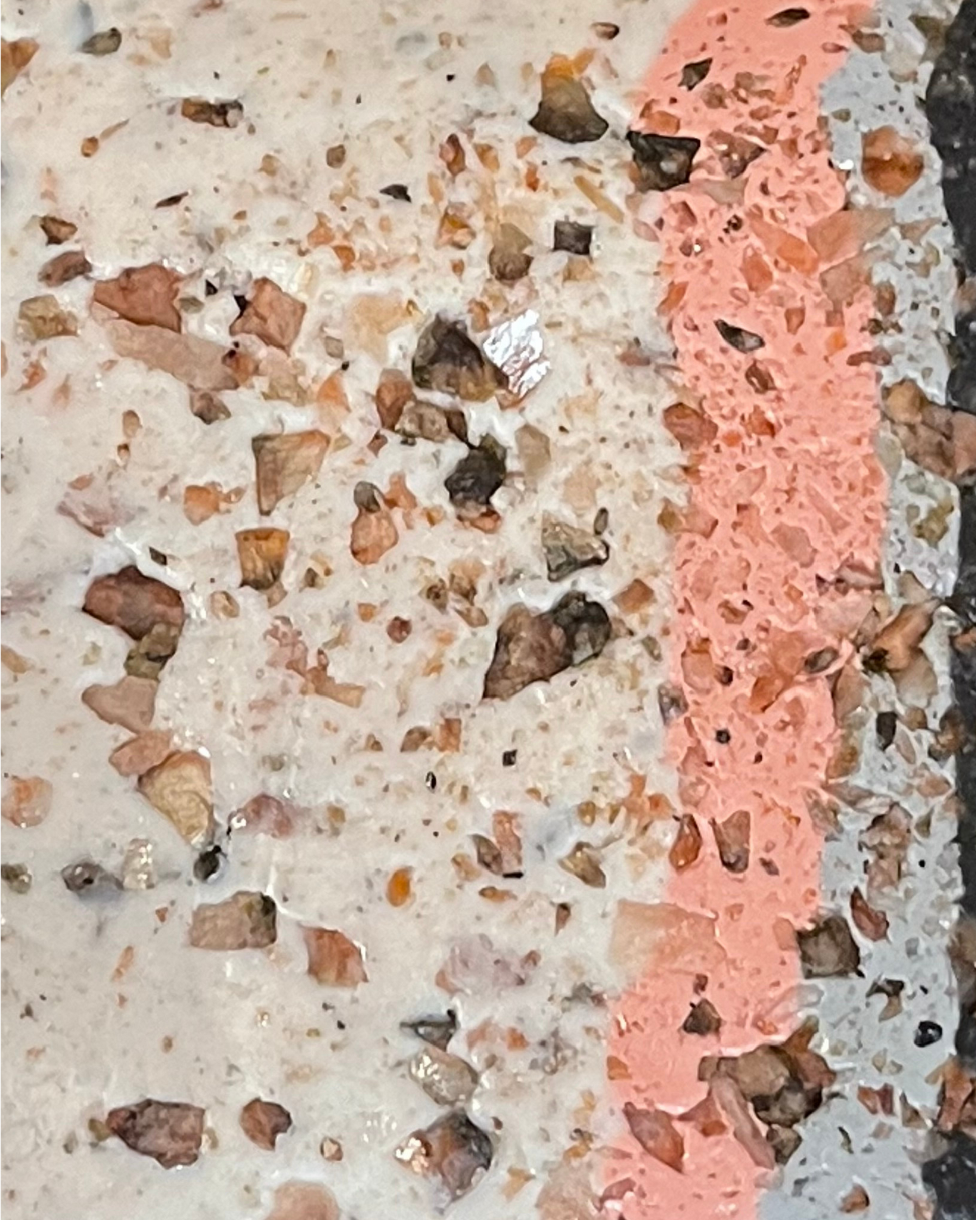 The clay is made with a blend of translucent Sculpey III, iron oxides for pigmentation, and natural pigmented fragments that were hand foraged and processed.