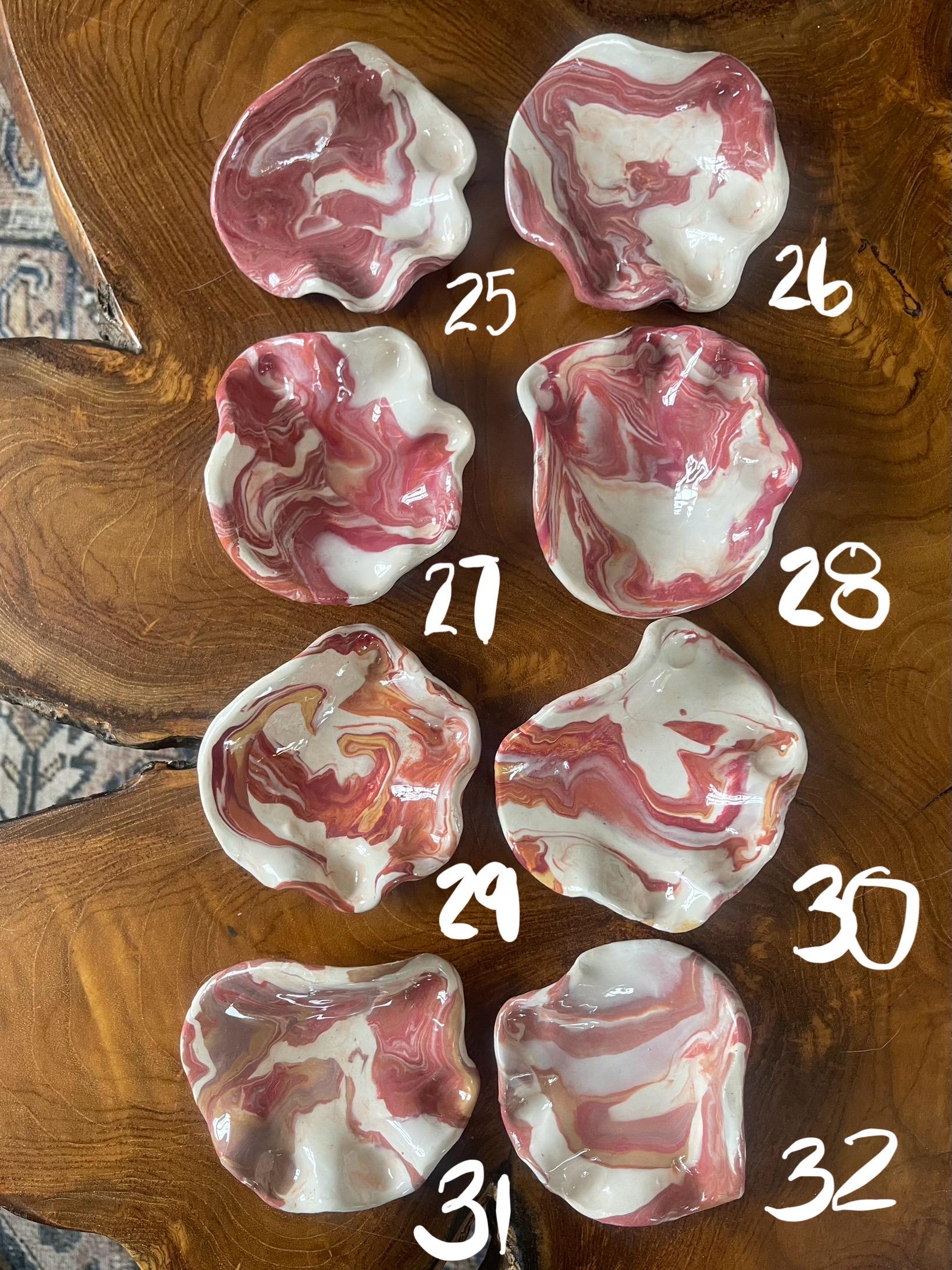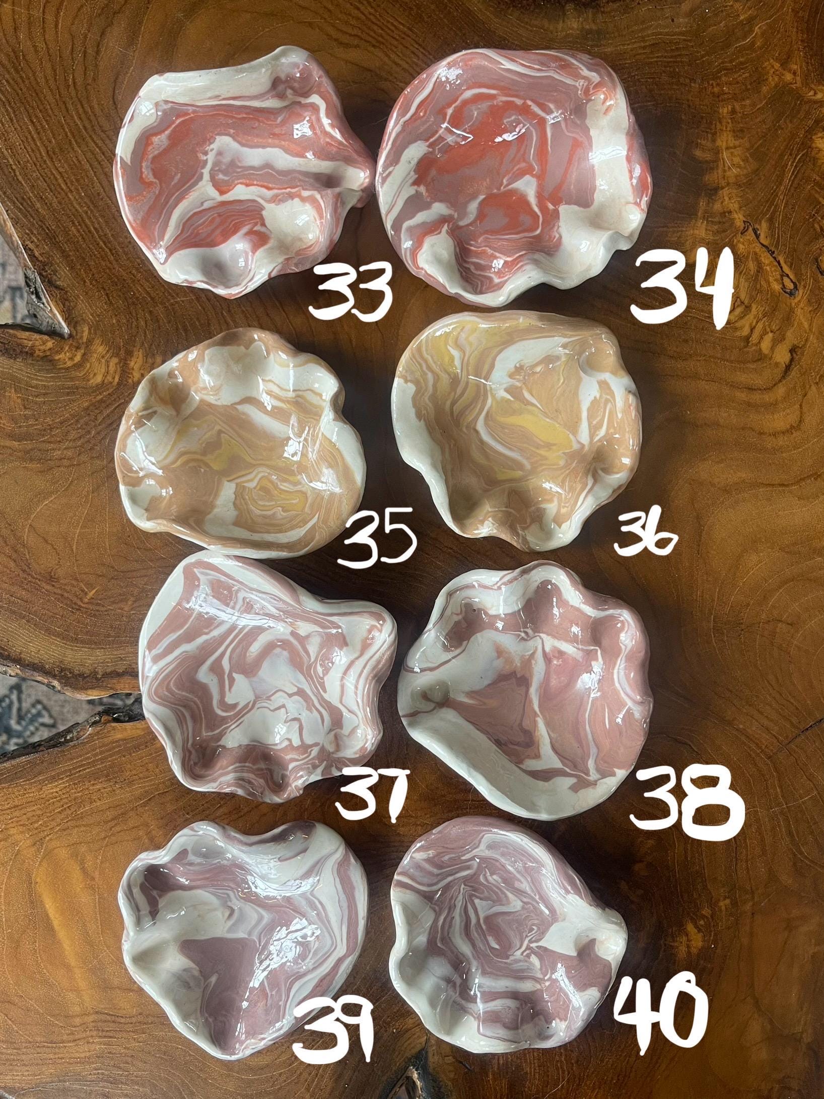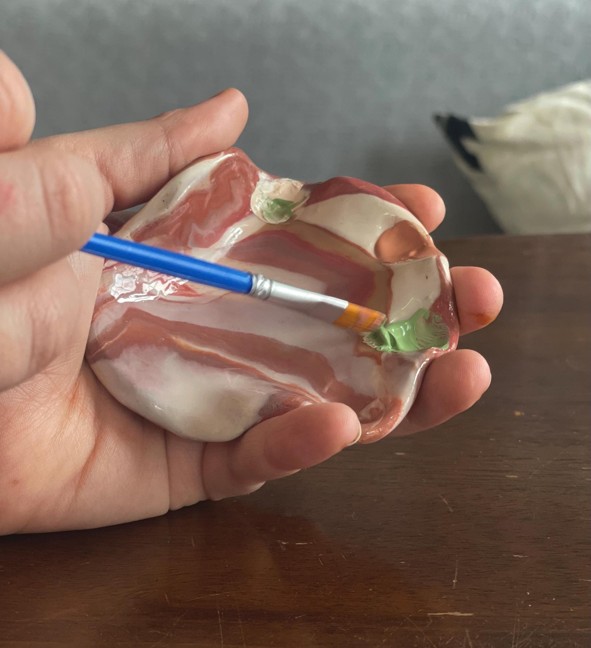 The clay is made with a blend of translucent Sculpey III, iron oxides for pigmentation, and natural pigmented fragments that were hand foraged and processed.