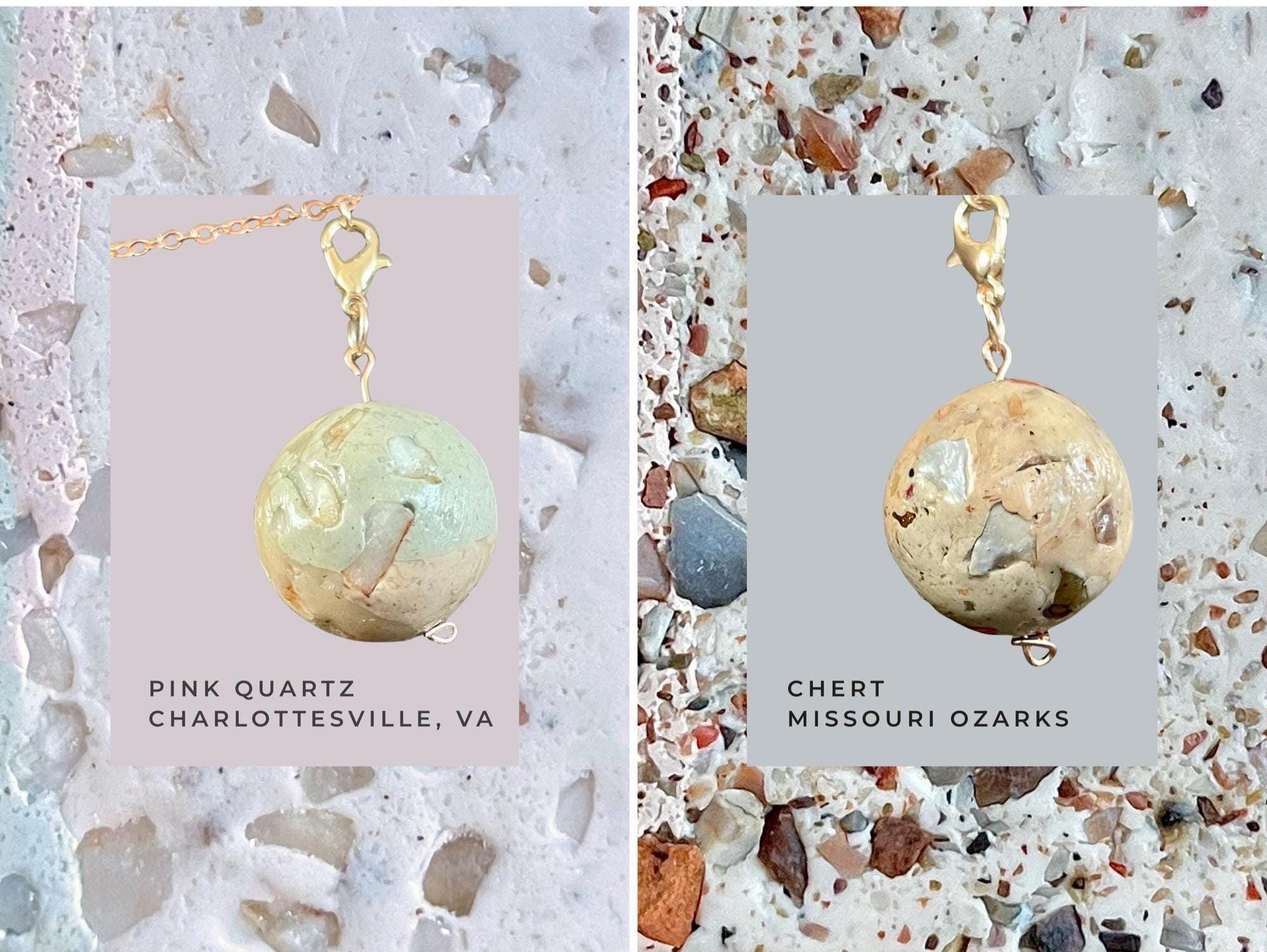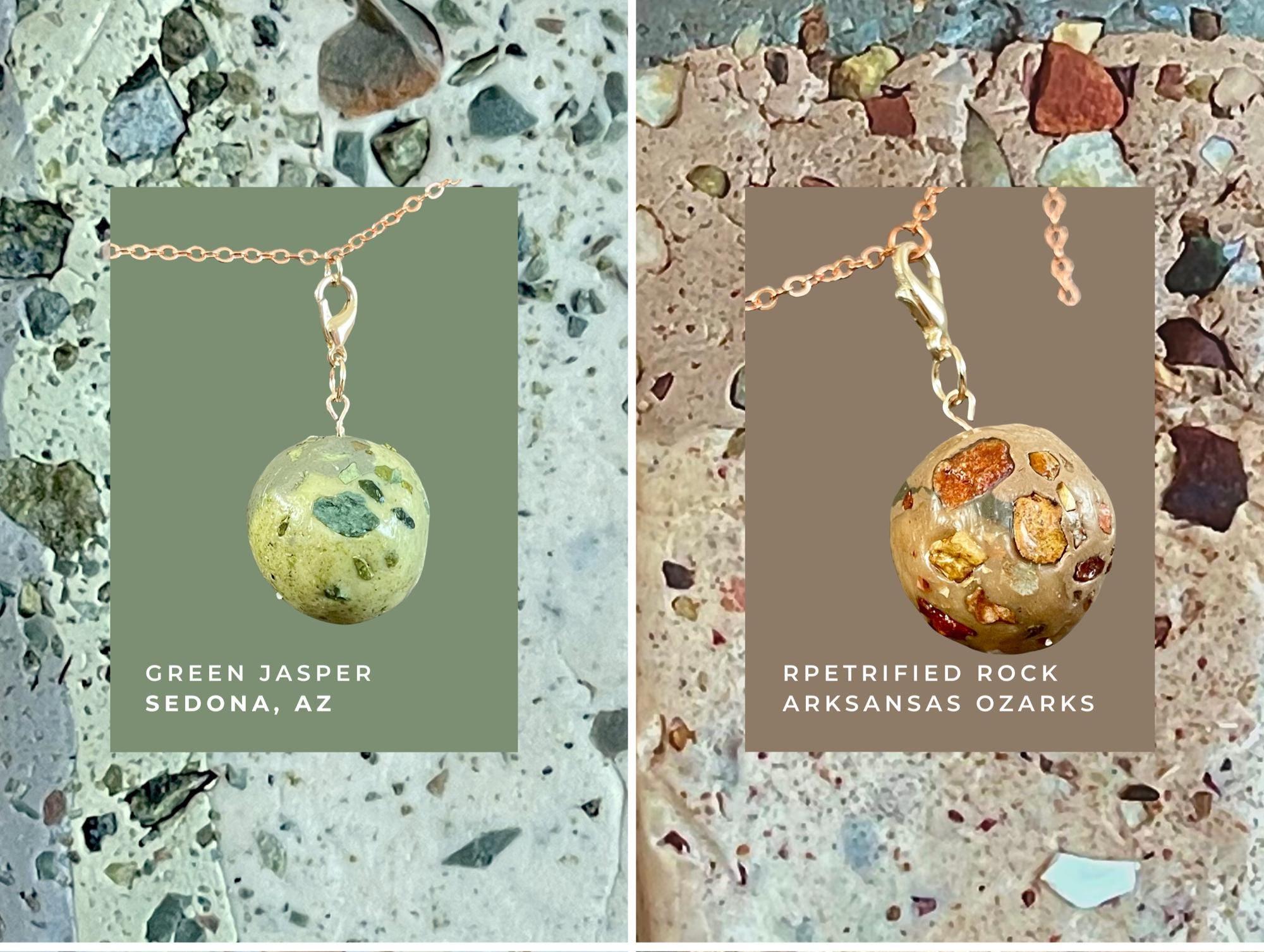 -Polymer clay base (Sculpey III) infused with authentic stone fragments