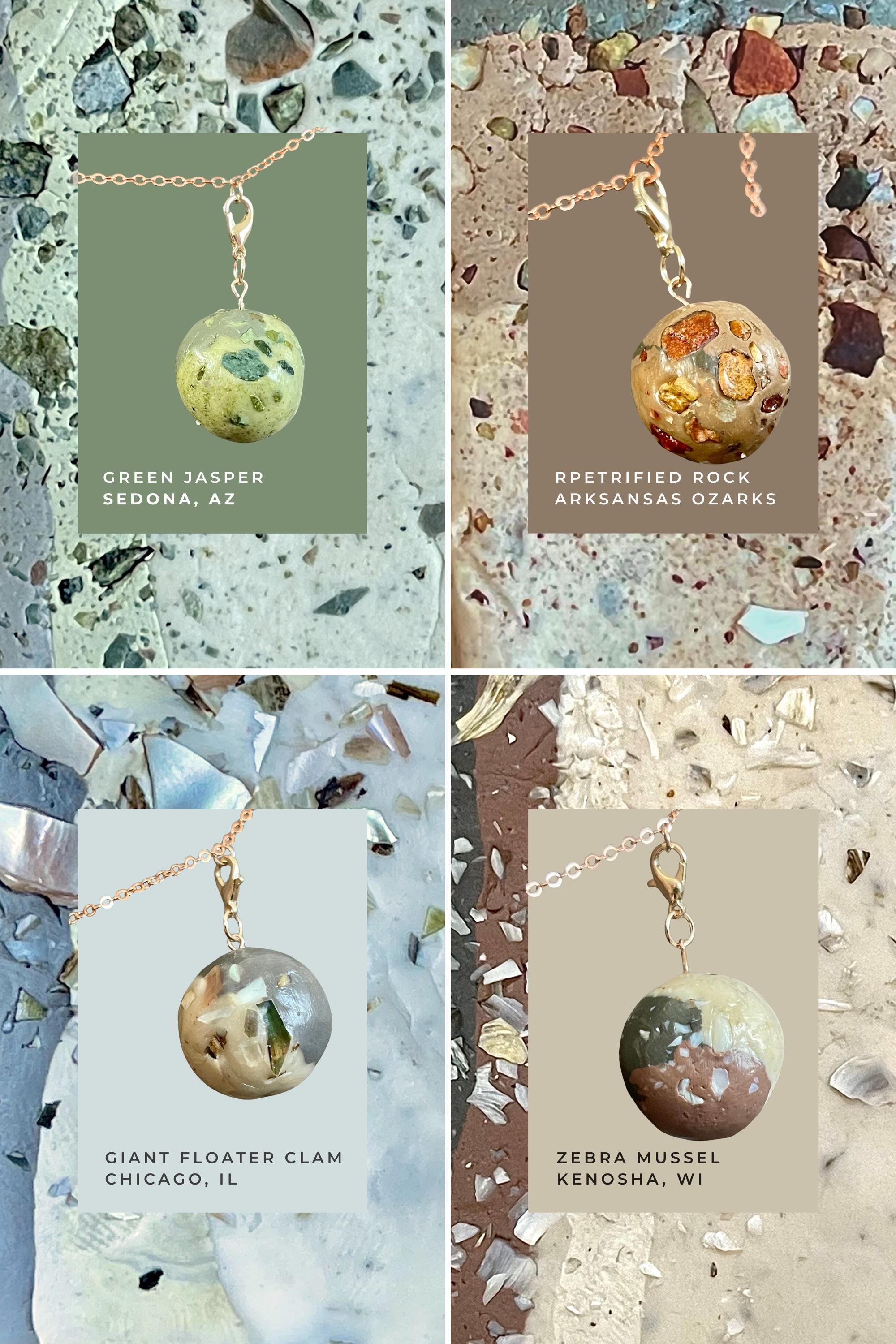 Each clay is 2 oz and hand-mixed in small batches with authentic foraged materials—geological and coastal traces reimagined as sculptural media. Fired, they reveal embedded fragments, subtle mineral shimmer, and organic speckles unique to their origins.